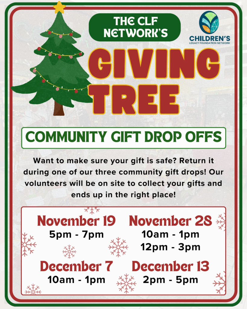 For everyone’s safety and to maintain anonymity for the children and families we serve, donations cannot be dropped off directly to any individual or agency partner. Please place your items in one of the official Giving Tree bins during mall hours, and our team will ensure they’re delivered safely to the correct organization.